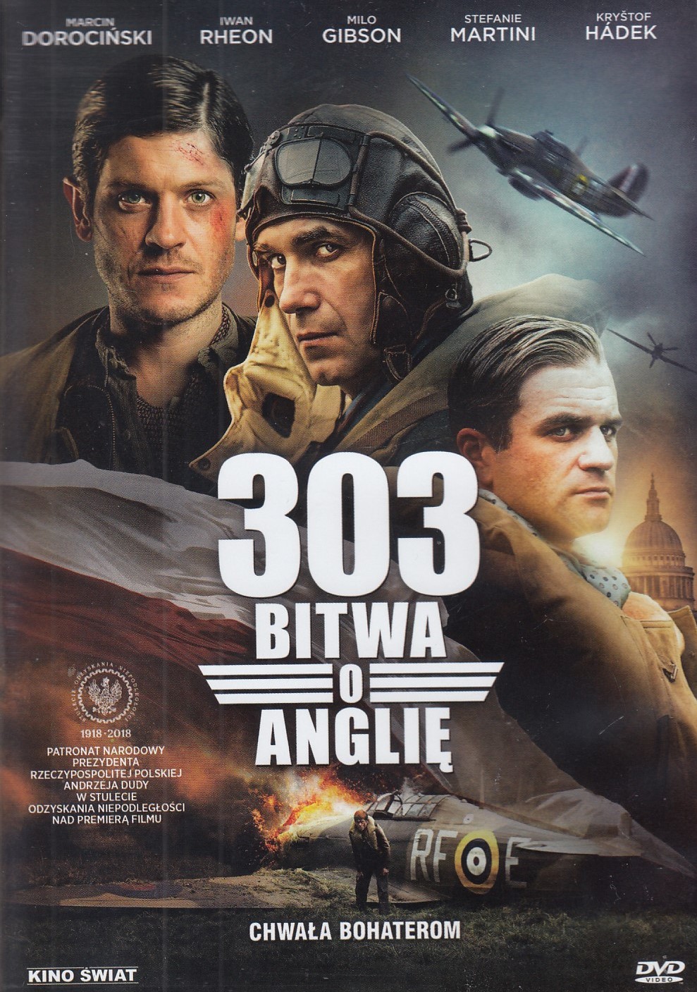 "Nigdy w historii ludzkich konfliktów tak wielu nie zawdzięczało tak dużo tak nielicznym" - fragment przemówienia Winstona Churchilla, w którym brytyjski premier podziękował lotnikom za powstrzymanie inwazji Hitlera. Pełna rozmachu i emocjonujących podniebnych walk superprodukcja opowiadająca niesamowitą historię Dywizjonu 303 imienia Tadeusza Kościuszki - legendarnych polskich lotników, którzy stali się najskuteczniejszymi pilotami podczas bitwy o Anglię w czasie II wojny światowej. W międzynarodowej obsadzie, obok Marcina Dorocińskiego (Jack Strong, Pitbull. Ostatni pies) i Filipa Pławiaka (Listy do M. 3), wystąpili również: gwiazda kultowego serialu "Gra o tron" - Iwan Rheon oraz syn Mela Gibsona - Milo Gibson (znany m.in. z nagrodzonego dwoma Oscarami obrazu "Przełęcz ocalonych"). Reżyserii podjął się David Blair - zdobywca nagród BAFTA i Emmy. Za efekty specjalne odpowiada firma Lipsync Post, mająca na swoim koncie pracę przy zagranicznych produkcjach z największymi hollywoodzkimi gwiazdami. Zdjęciami do filmu zajął się Piotr Śliskowski - wybitny operator, który pracował przy "Generale Nilu", "80 milionach" i serialu "Czas honoru. Powstanie". Jest rok 1940. Władze i ludność Wielkiej Brytanii z rosnącym przerażeniem patrzą na inwazję niemieckiej armii na Europę. Rozpoczyna się bitwa o Anglię, w której doskonale wyszkoleni i doświadczeni piloci Luftwaffe zaciekle atakują alianckie samoloty RAFu. Z pomocą przybywają doborowi polscy lotnicy: Jan Zumbach, Witold Urbanowicz, Mirosław Ferić i Witold "Tolo" Łokuciewski. To weterani, którzy pragną walczyć w obronie swojej ojczyzny nawet poza jej granicami. Początkowa nieufność Brytyjczyków musi ustąpić wielkiemu szacunkowi, jakim Anglicy zaczynają darzyć polskich pilotów. Tak powstaje Dywizjon 303 imienia Tadeusza Kościuszki, który okazał się być najskuteczniejszym oddziałem powietrznym w trakcie bitwy o Anglię. Bohaterom przypisuje się zestrzelenie ponad 120 niemieckich samolotów - to wynik, jakiego nie udało się osiągnąć żadnemu innemu powietrznemu dywizjonowi."My nie błagamy o wolność, my o nią walczymy" - Witold Urbanowicz, dowódca Dywizjonu 303. (Opis wg www.filmydvd.pl)